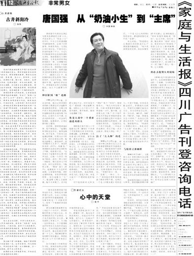 2009年3月23日晚,第二届华鼎之夜演艺名人公众形象满意度调查发布盛典在京举行。唐国强获得中国影视演员公众形象调查第一名。他对华鼎奖非常重视,之前的发布会因为身在外地,还特别委托妻子和孩子替他出席。这次颁奖,唐国强更是亲自赶来参加。尽管这次妻子、孩子没有陪同前来,但唐国强却开玩笑地说: “我刚才抬头一看,一个 ‘老婆’,一转头,又一个。”原来他在颁奖现场遇到了韩再芬和牛莉,这两位一个是 《贞观长歌》里的皇后,一个是 《江山风雨情》里的皇妃,都是唐国强在戏中的 “老婆”。