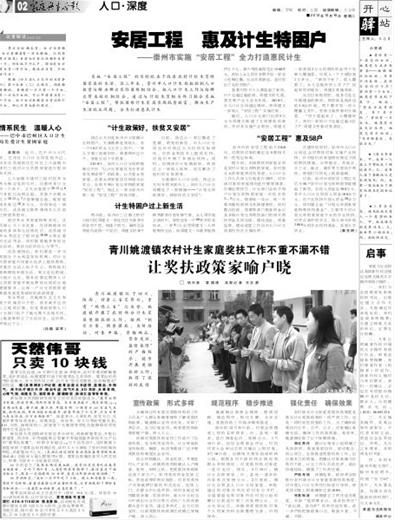 青川姚渡镇农村计生家庭奖扶工作不重不漏不