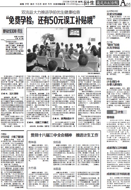 家庭与生活报记者 余飞骏 @家庭与生活报: 双流县打出加大宣传、创新工作模式、提高检查水平等“组合拳”,大力开展免费孕前检查。今年,全县已有3016对已婚待孕夫妇自觉自愿参与检查。 双流县被纳入了国家级孕前优生健康检查试点县后,打出加大宣传、创新工作模式、提高检查水平等“组合拳”,群众对免费孕检的知晓率大大提高,截至11月,全县已有3016对已婚待孕夫妇自觉自愿参与检查,目标人群参检率达80%以上。 关键词:加大宣传 短信宣传,深入推广 “小天使的降临将为家庭带来幸福,一旦孩子不幸患有严重的出生缺陷疾病,将给家庭带来不幸,符合生育政策计划怀孕的双流籍夫妇持相关证件可到县计生服务站接受免费孕前健康检查。”家住双流县的小张夫妇刚结婚不久,近来手机里面常会收到类似这样的短信,最初他们还不知道是什么情况。“但后来才知道这是县人口计生局在宣传孕前优生健康检查,渐渐地也知道了其重要性,明年准备要娃娃的时候我们俩也去做个检查。”小张对记者说。 “坝坝电影”,生动讲述 为了要让百姓听得进,听得懂,能重视,县人口计生局制作了生动活泼的专题宣传片,以村(社区)、计生技术服务机构为宣传平台,在全县251个村(社区)每月两次的农村“坝坝电影”前播放宣传片,以寓教于乐的形式将孕前优生健康检查的重要性根植于人们的心中。 发放资料,宣传健康 双流县人口计生局在双流县婚姻登记窗口设立起优生宣传窗口,为新婚夫妇发放免费孕前优生健康检查宣传礼包;印制了数万份免费孕检的宣传画、宣传折页以及专题宣传片,通过各种渠道广泛张贴、发放、放映 双流县人口和计划生育局相关工作人员告诉记者,他们刚刚开展免费孕前健康检查的时候,很多群众都不太理解和支持,但通过一系列的宣传,形成了群众积极参与的新局面。 关键词:创新工作模式 放宽时限,随时服务 随着宣传力度的加强,前来参加孕前优生健康检查的人越来越多,为了方便群众检查,县人口计生局将检查的时间由原来的每周星期二、四放宽到每周星期一至五随时可以做检查,甚至在周末,只要由村(社区)提前预约也能为参检群众做检查。县人口计生局对群众作出了“只要您能来,就一定会为您提供检查服务”的承诺。 集体组织,方便出行 对于距离县计生服务站比较远的群众,他们所属的村(社区)会根据参检人数定期组织车辆统一将他们送到县计生服务站进行检查并集体送回。 误工补贴,保障利益 为了避免因为孕前优生健康检查而耽误工作导致收入损失,县人口计生局为每对前来检查的夫妻提供50元的误工补贴。 关键词:提高检查水平 县计生服务站承担了全县免费孕检的重任,为提高检查质量,双流县着力提升服务站的软、硬件,引进了6名检验和影像的专业人员,运用信息化设备和软件提高检查服务效率及品质,在服务站打造“生命绿岛”为群众提供温馨舒适便捷的检查环境。以先进的检查设备和技术精湛的专业人才为支撑,参检群众的满意率“噌噌噌”直往上升。 “真的非常感谢县人口计生局和服务站,要是没有孕前优生健康检查,也许就没有我们现在这样幸福的家庭了。”王梅和她的丈夫激动地对记者说:“他们不仅帮我们这么一个大忙,最后连钱也帮我们付了,让我们感受到了家的温暖。” 王梅夫妇是双流县大林镇人,王梅在怀孕17周时经产前筛查,诊断为唐氏综合征高风险,计生服务站将其纳入了高危人群妊娠管理。 在华西医院相关专家的指导和帮助下,5月24日王梅终于在双流县妇幼保健院经剖腹产生育一个六斤二两的健康宝宝。王梅先后共花费2478元,全部由双流县人口计生局为其支付。 |