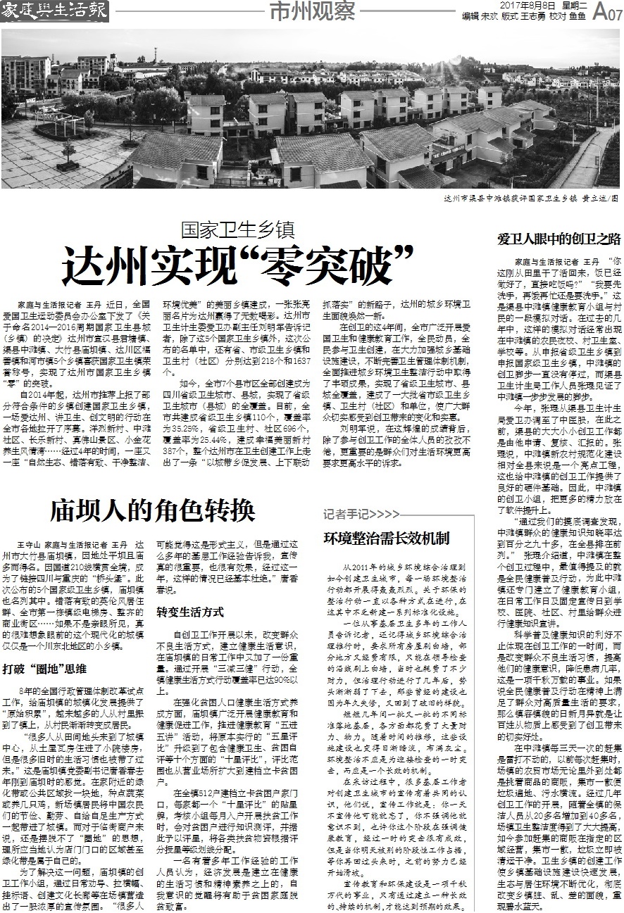 国家卫生乡镇达州实现“零突破”