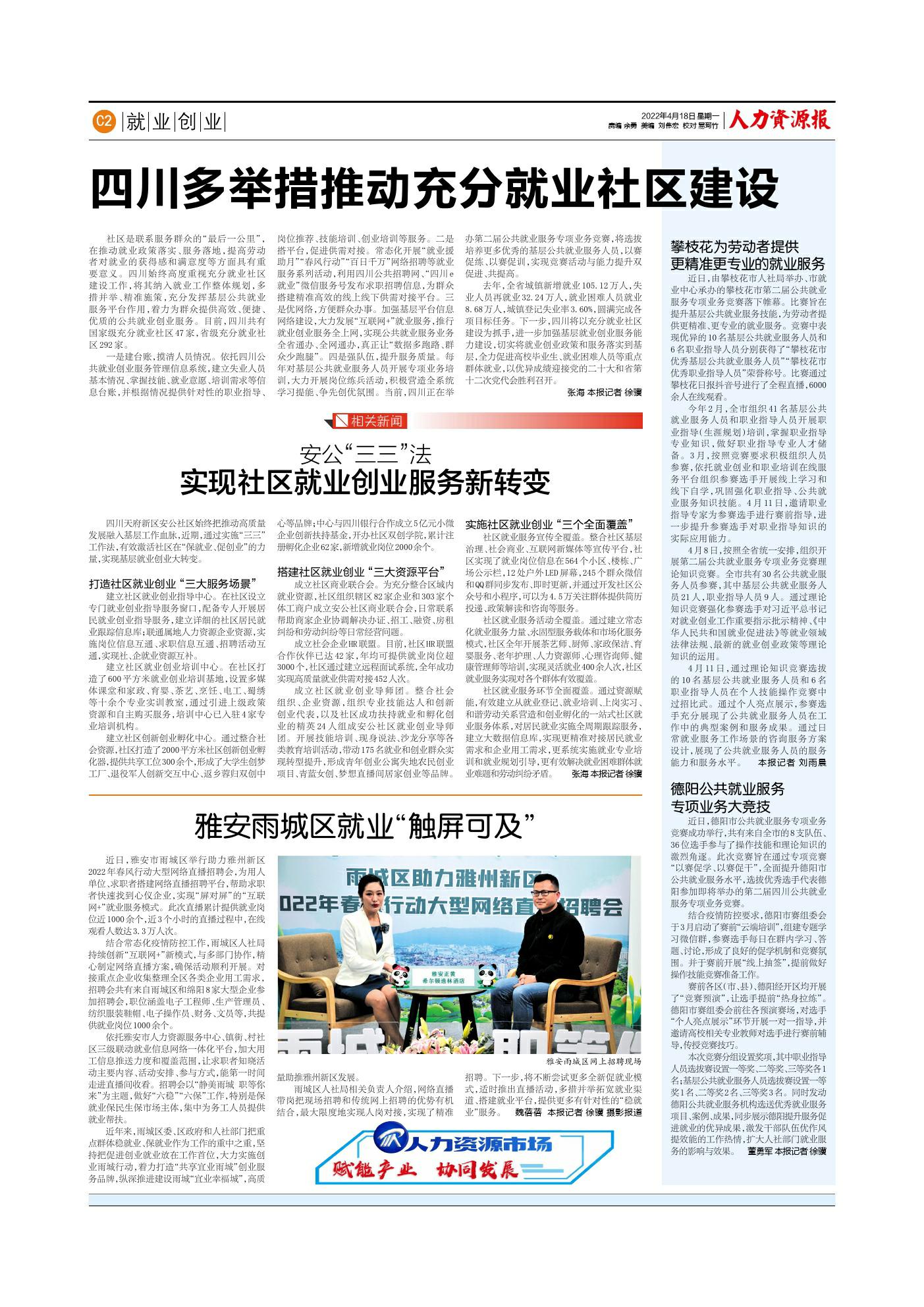 四川多举措推动充分就业社区建设