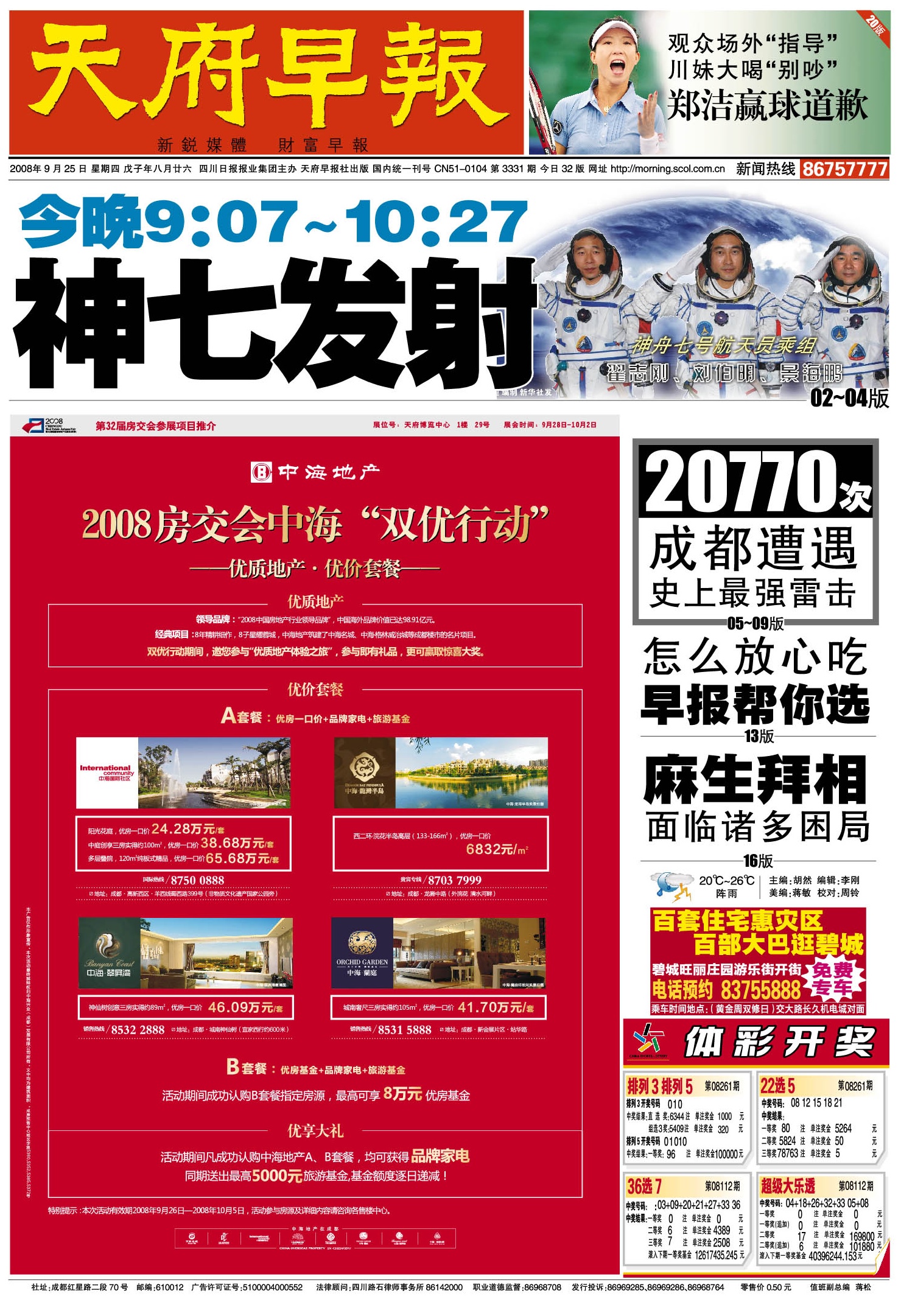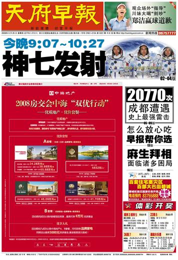 今晚9:07~10:27神七发射郑洁赢球道歉20770次 成都遭遇史上最强雷击怎么放心吃早报帮你选麻生拜相面临诸多困局