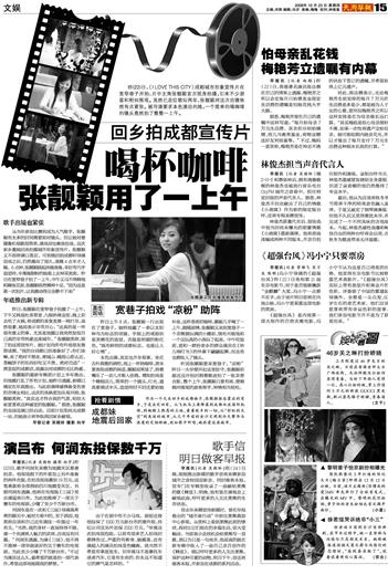回乡拍成都宣传片 喝杯咖啡张靓颖用了一上