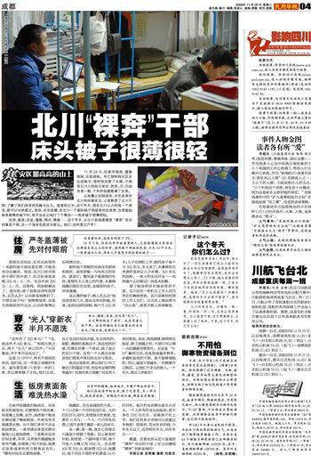 北川“裸奔”干部 床头被子很薄