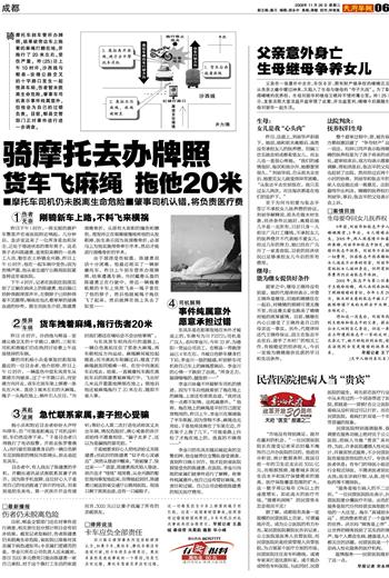 骑摩托去办牌照 货车飞麻绳拖他20米