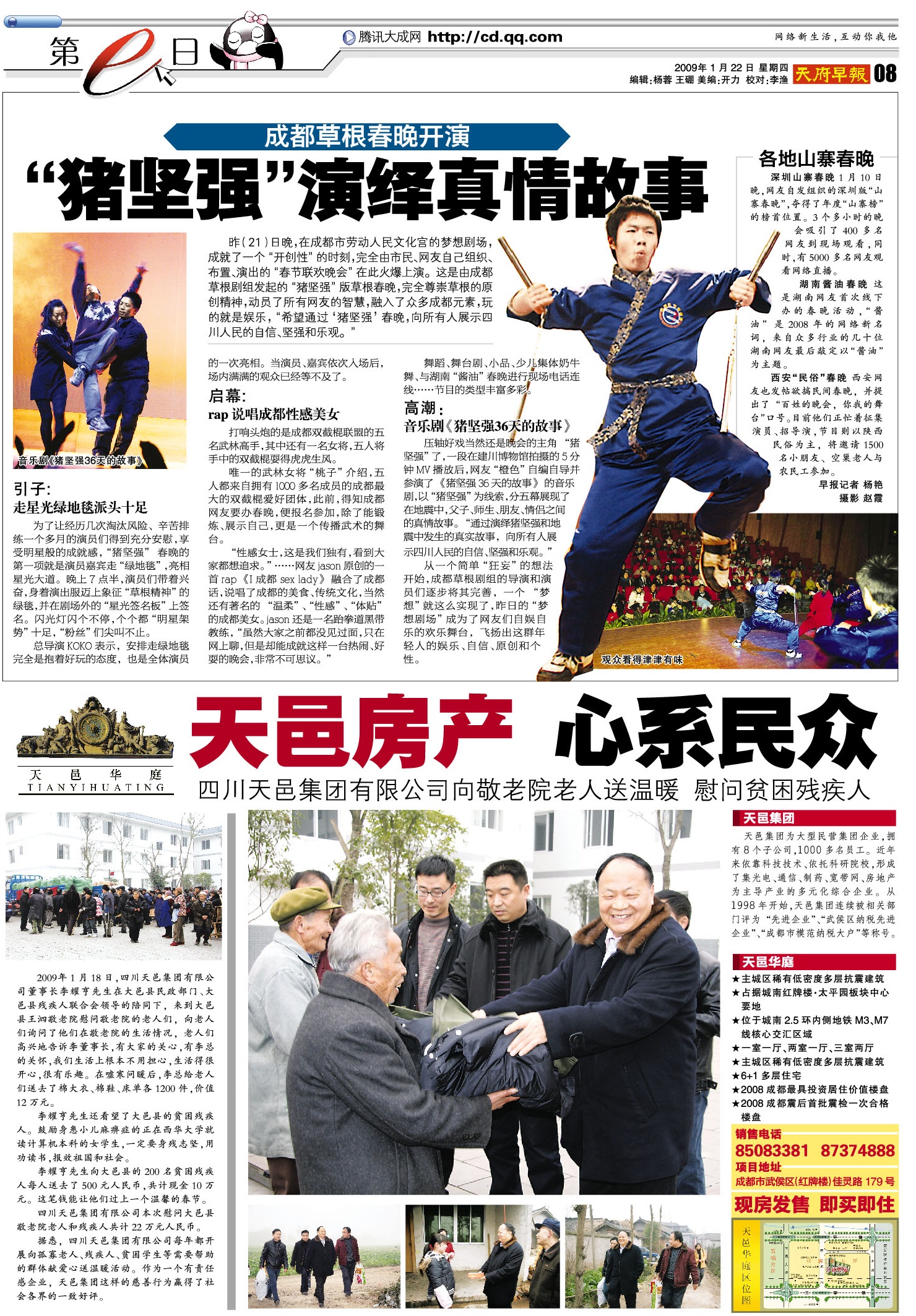 成都草根春晚开演 “猪坚强”演绎真情故事