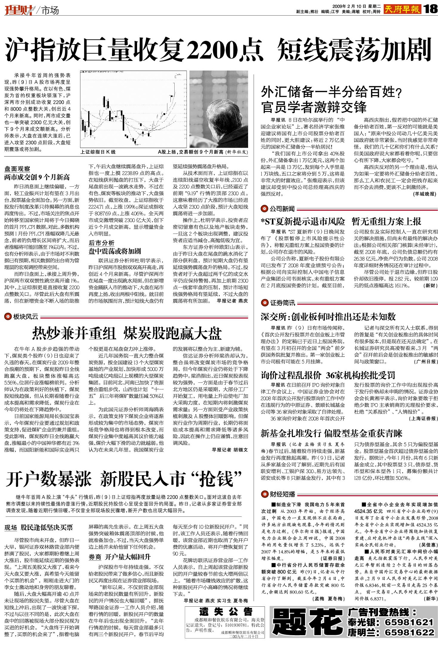 沪指放巨量收复2200点 短线震荡加剧