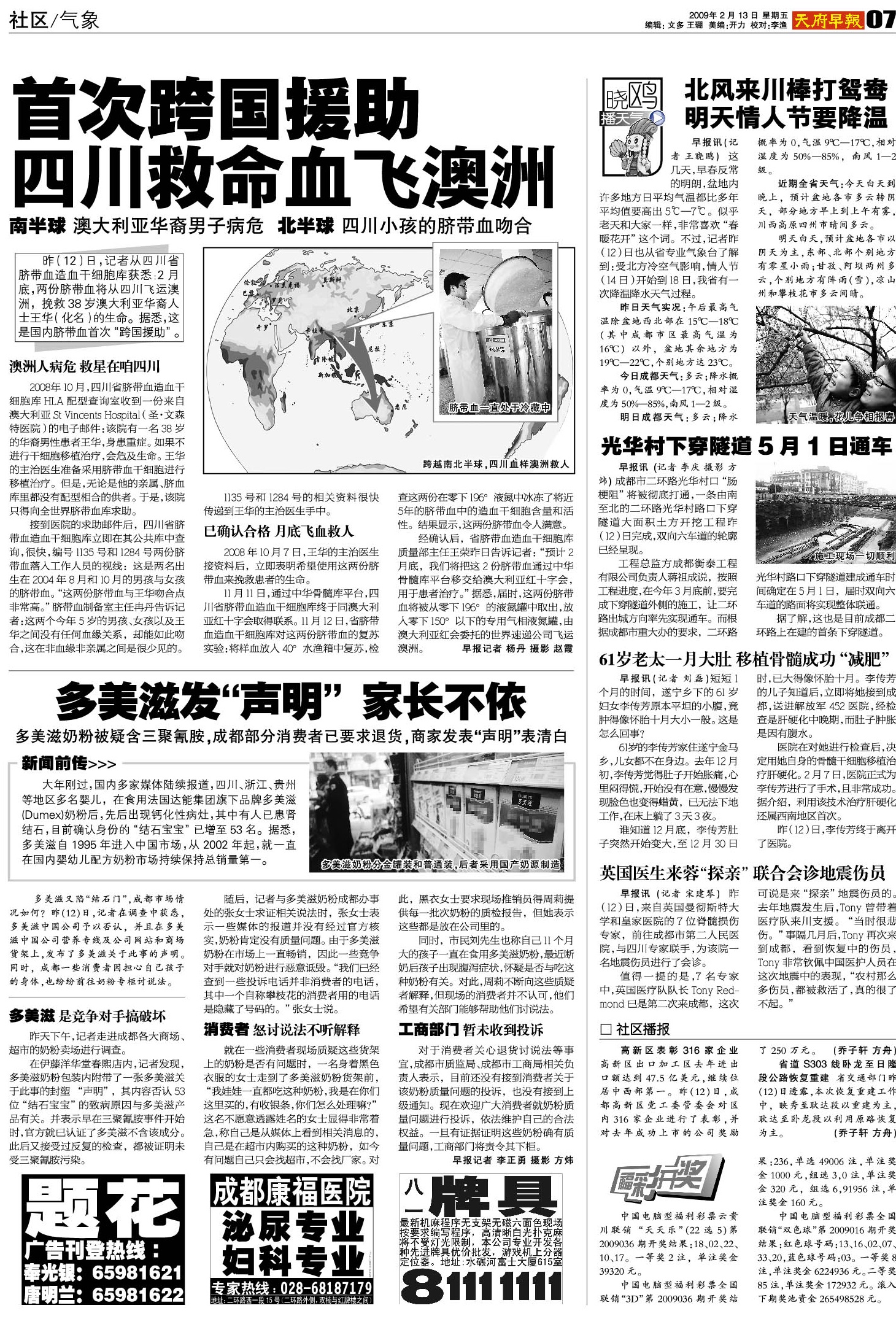 首次跨国援助 四川救命血飞澳洲