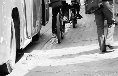 早报讯(实习记者李超车晓雯摄影黄瑶)昨(24)日,一位热心市民向本报反映,在小天竺街与人民南路三段交汇处有一段盲道很窄,且紧挨着非机动车道,盲人若要通过会非常危险。