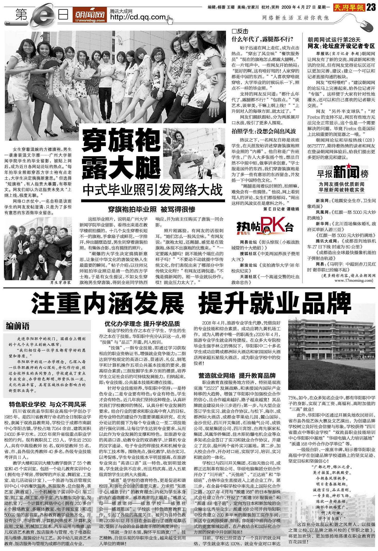 穿旗袍露大腿 中式毕业照引发网络大战