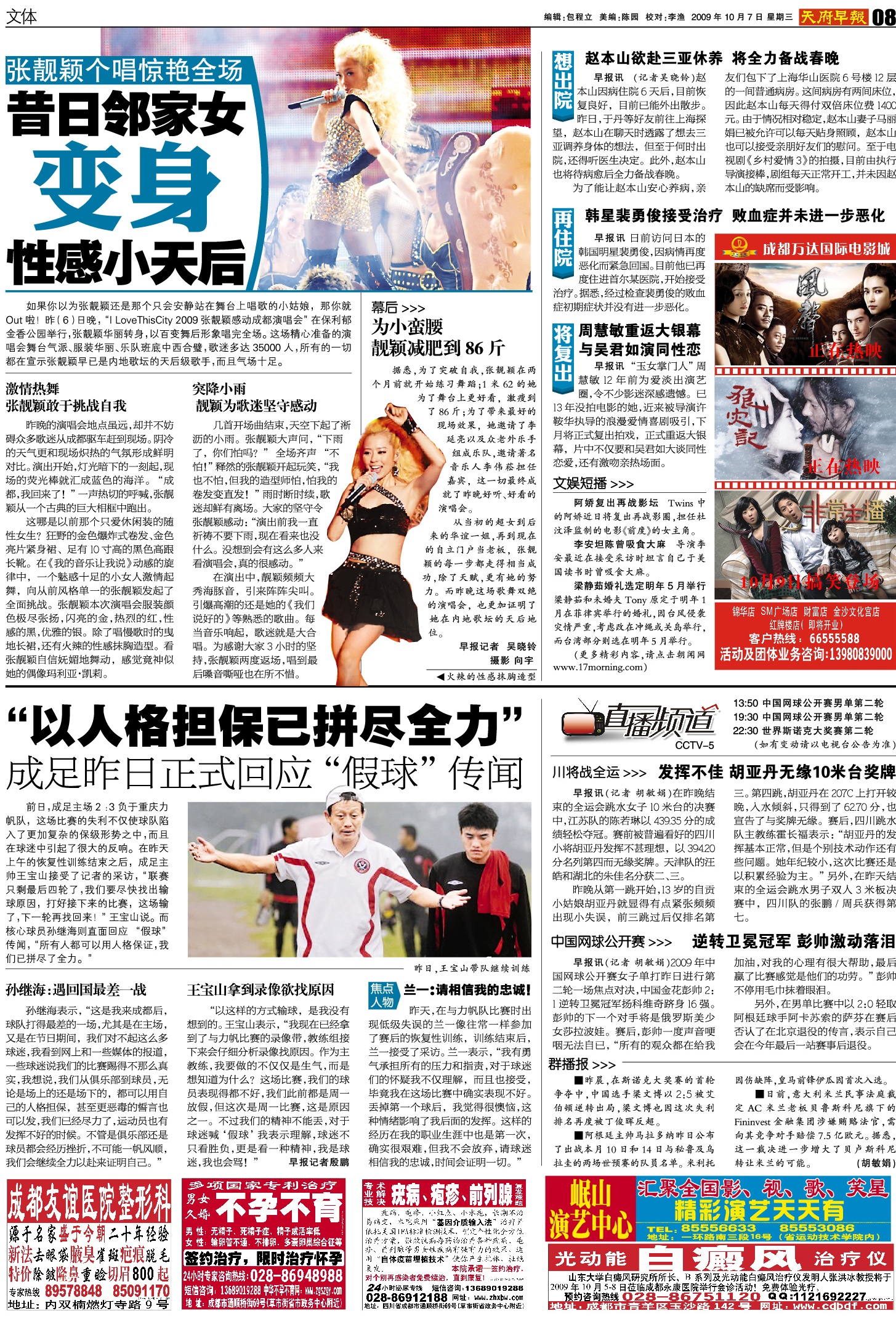 “以这样的方式输球,是我没有想到的。王宝山表示,“我现在已经拿到了与力帆比赛的录像带,教练组接下来会仔细分析录像找原因。作为主教练,我要做的不仅仅是生气,而是想知道为什么?这场比赛,我们的球员表现得都不好,我们此前都是周一放假,但这次是周一比赛,这是原因之一。不过我们的精神不能丢,对于球迷喊‘假球’我表示理解,球迷不只看胜负,更是看一种精神,我是球迷,我也会骂!” 早报记者殷鹏