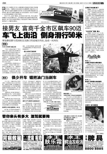 ·接男友富商千金市区飙车90迈 车飞上街沿侧身滑行50米