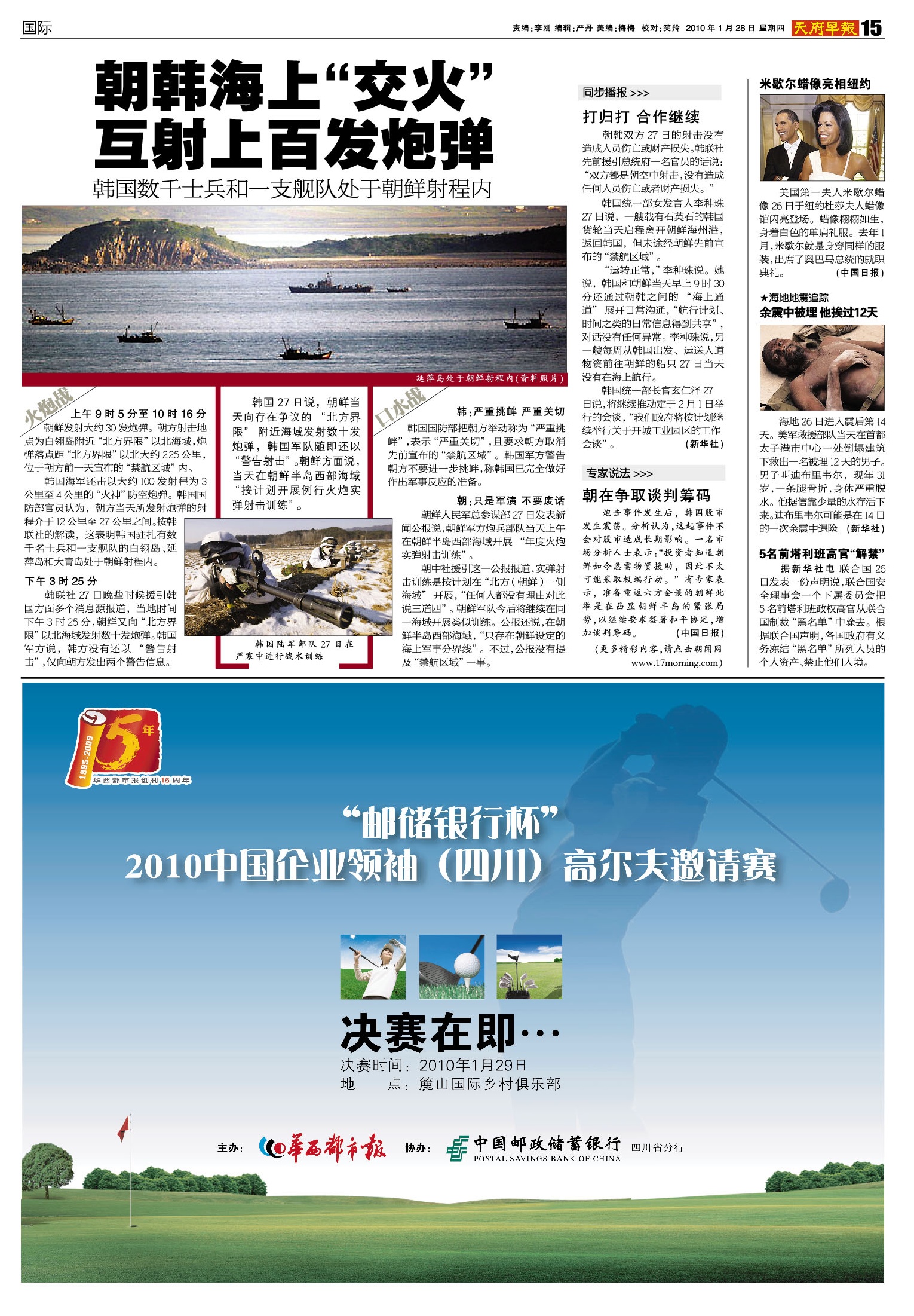 朝韩海上“交火” 互射上百发炮弹