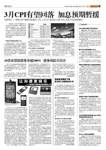 3月CPI有望回落 加息预期暂缓