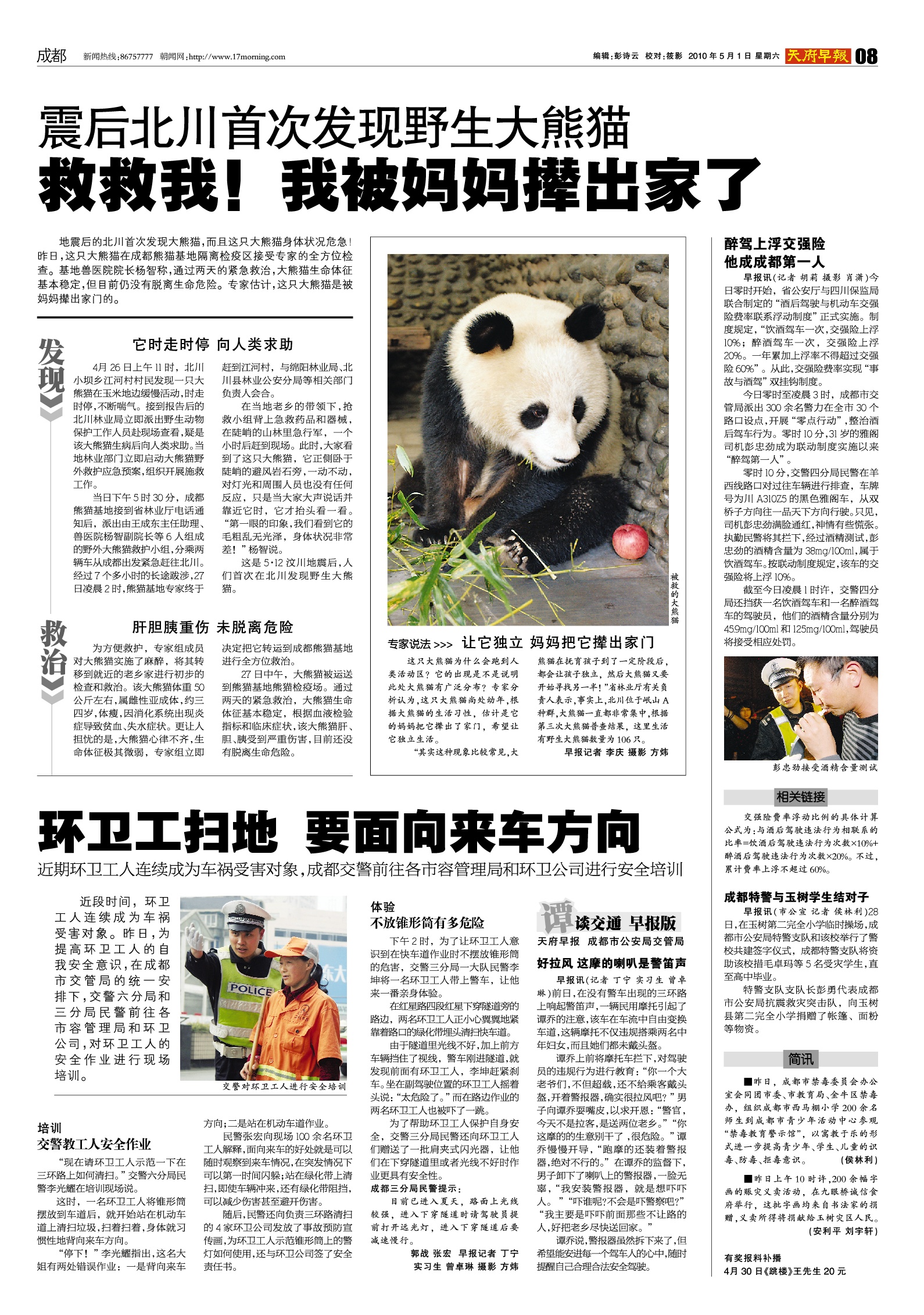 震后北川首次发现野生大熊猫 救救我!我被