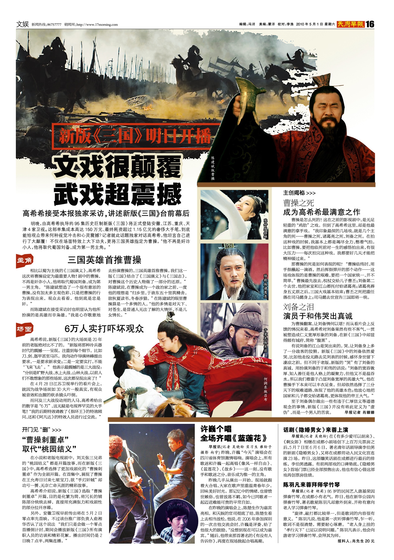 新版《三国》明日开播 文戏很颠覆武戏超震