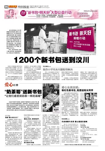爱心女孩吴瑶:粉红色新书包,我想送给女同