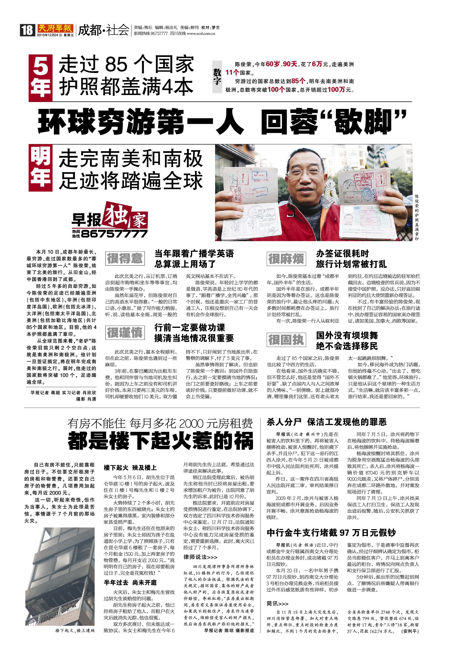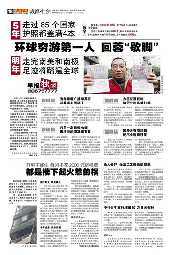 环球穷游第一人 回蓉“歇脚”