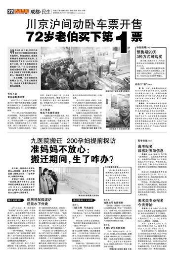 川京沪间动卧车票开售 72岁老伯买下第1