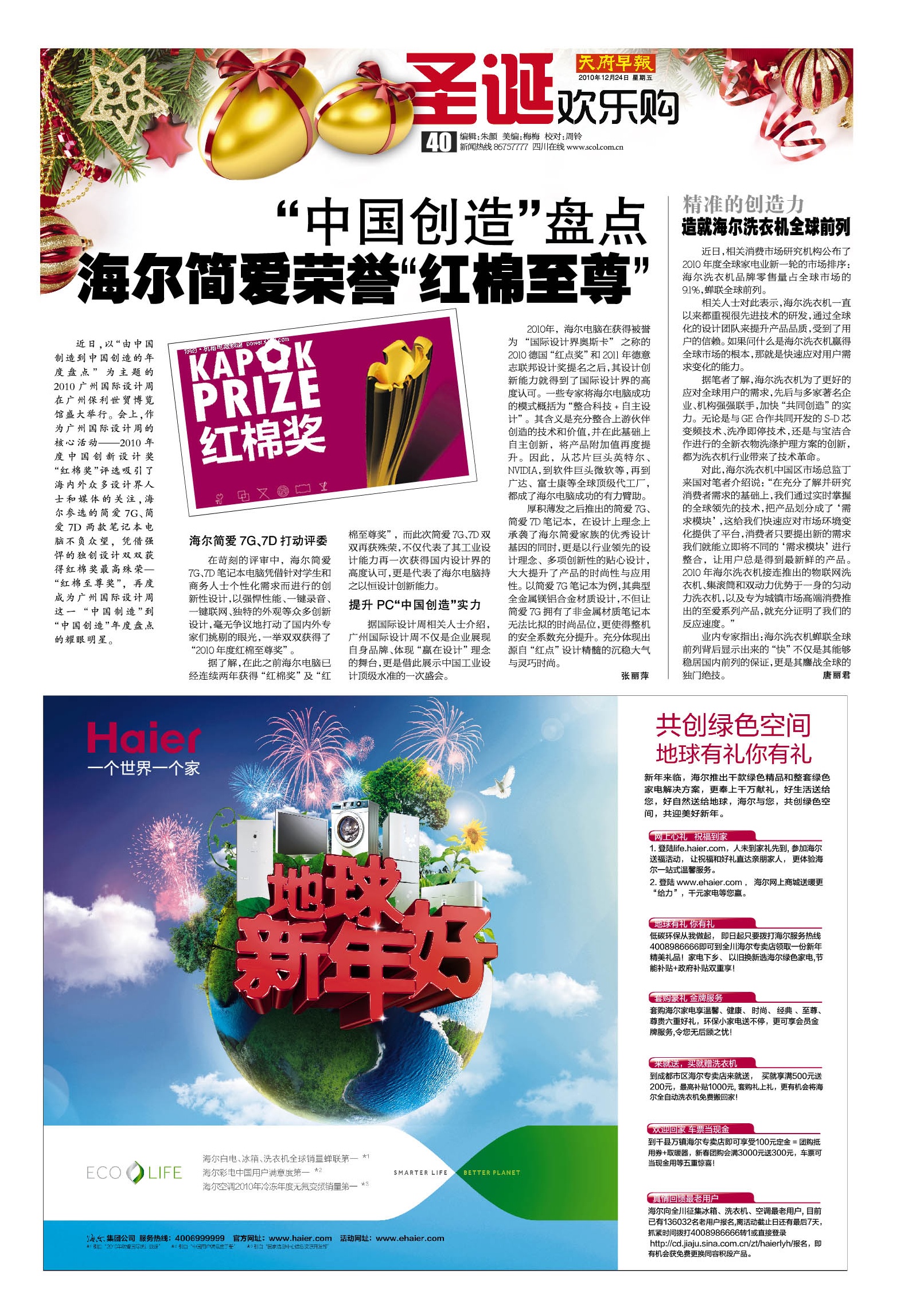 “中国创造”盘点 海尔简爱荣誉