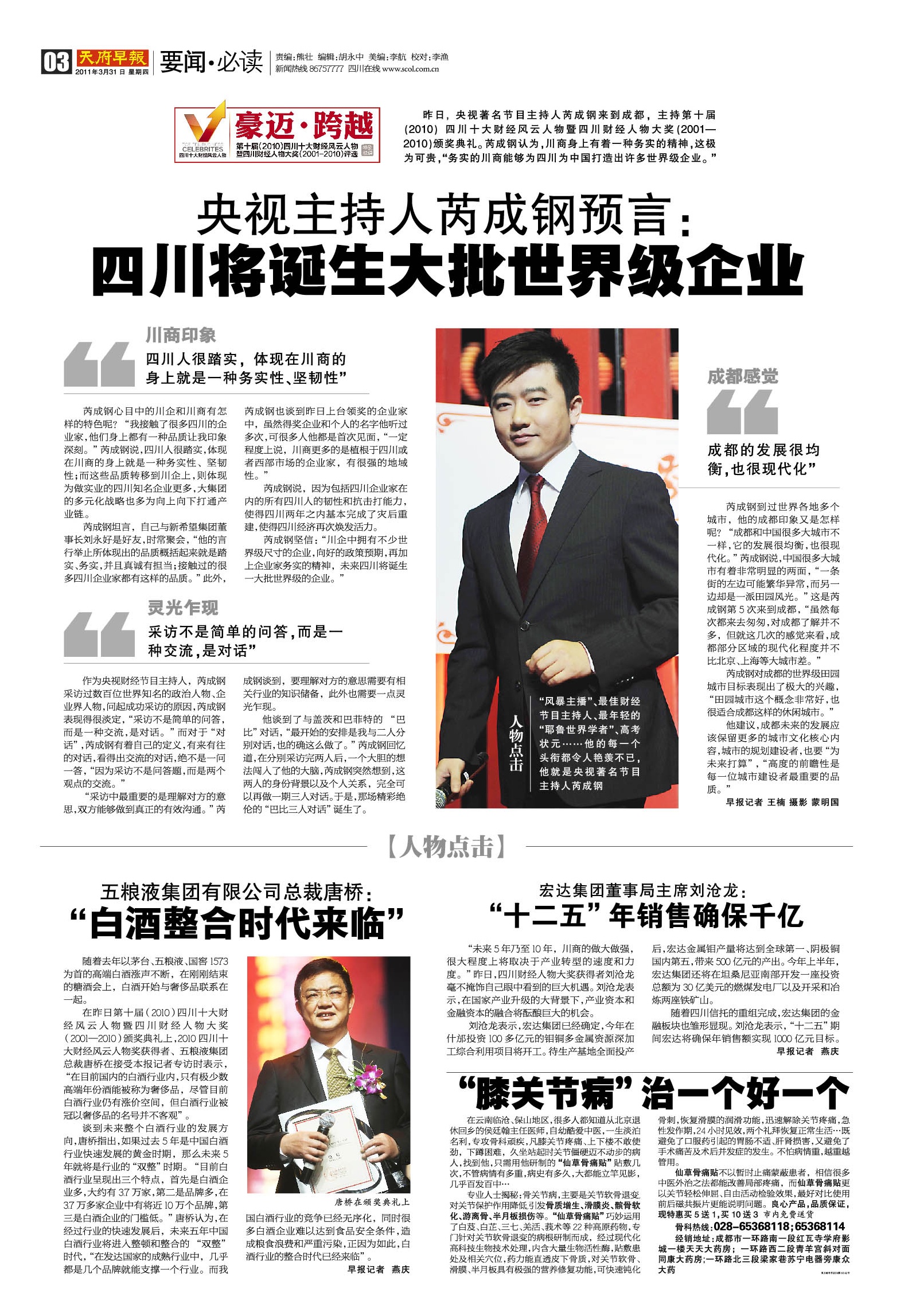 央视主持人芮成钢预言:四川将诞生大批世界