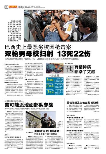 巴西史上最恶劣校园枪击案 双枪男母校扫射