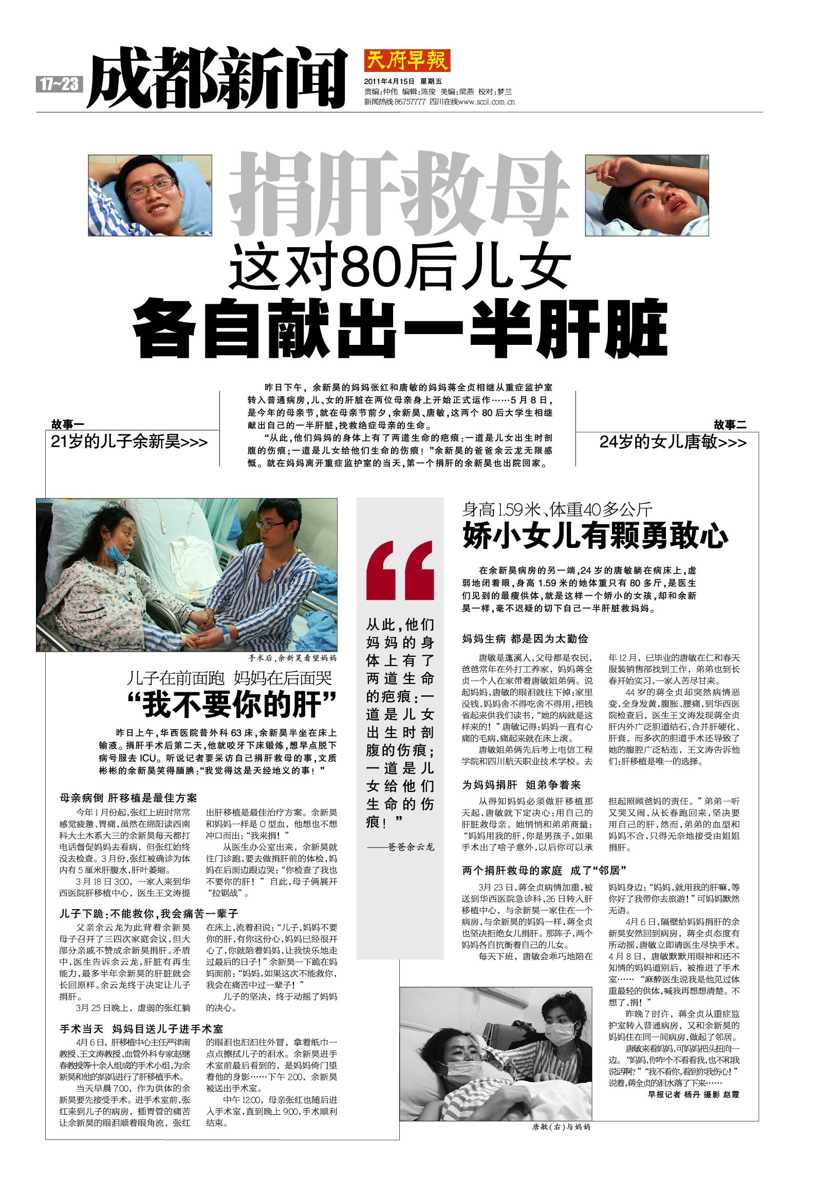 捐肝救母 这对80后儿女各自献出一半肝脏