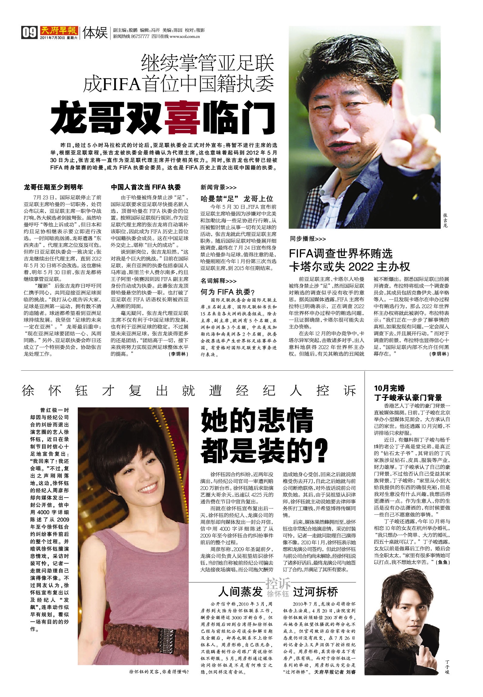 龙哥双喜临门 继续掌管亚足联