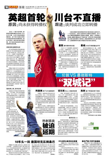 经过一个夏天的等待,新赛季英超联赛将在明晚10点拉开大幕。让四川球迷稍感遗憾的是,由于四川电视台目前尚未敲定最终的转播事宜,因此本周末上演的英超首轮联赛,四川地区的球迷很可能无缘收看电视直播。