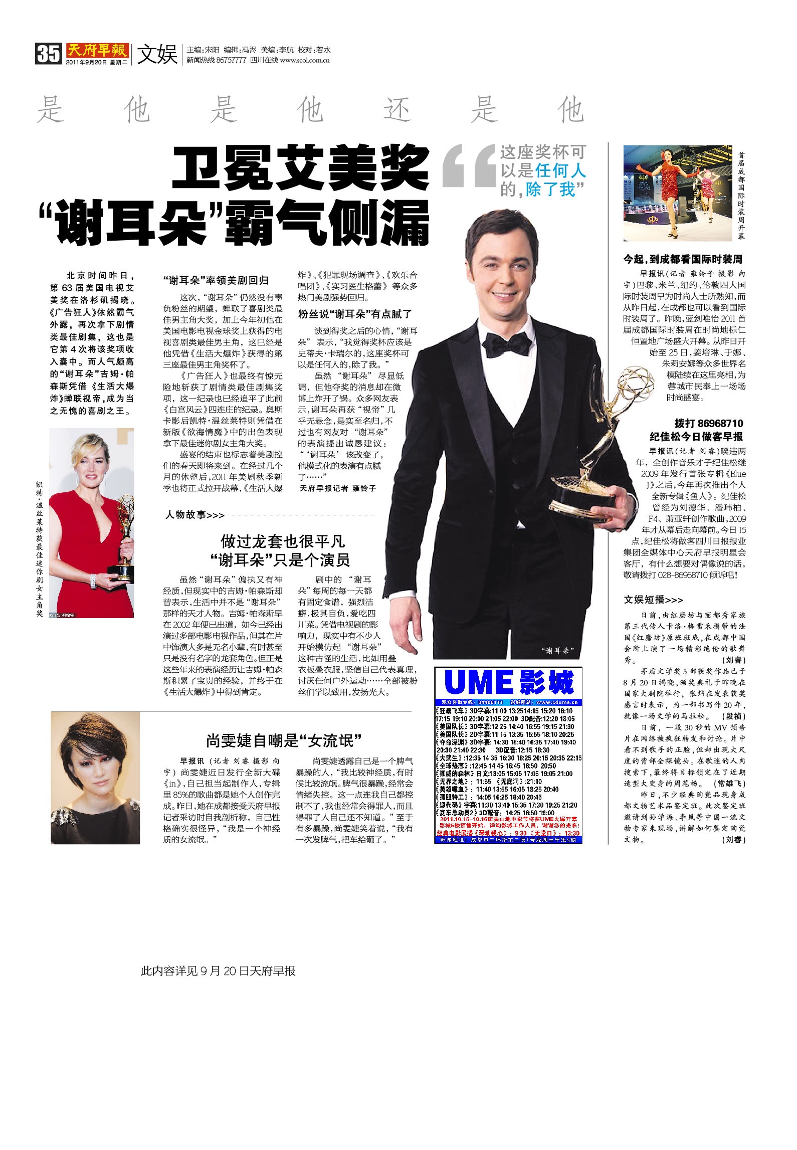 卫冕艾美奖“谢耳朵”霸气侧漏