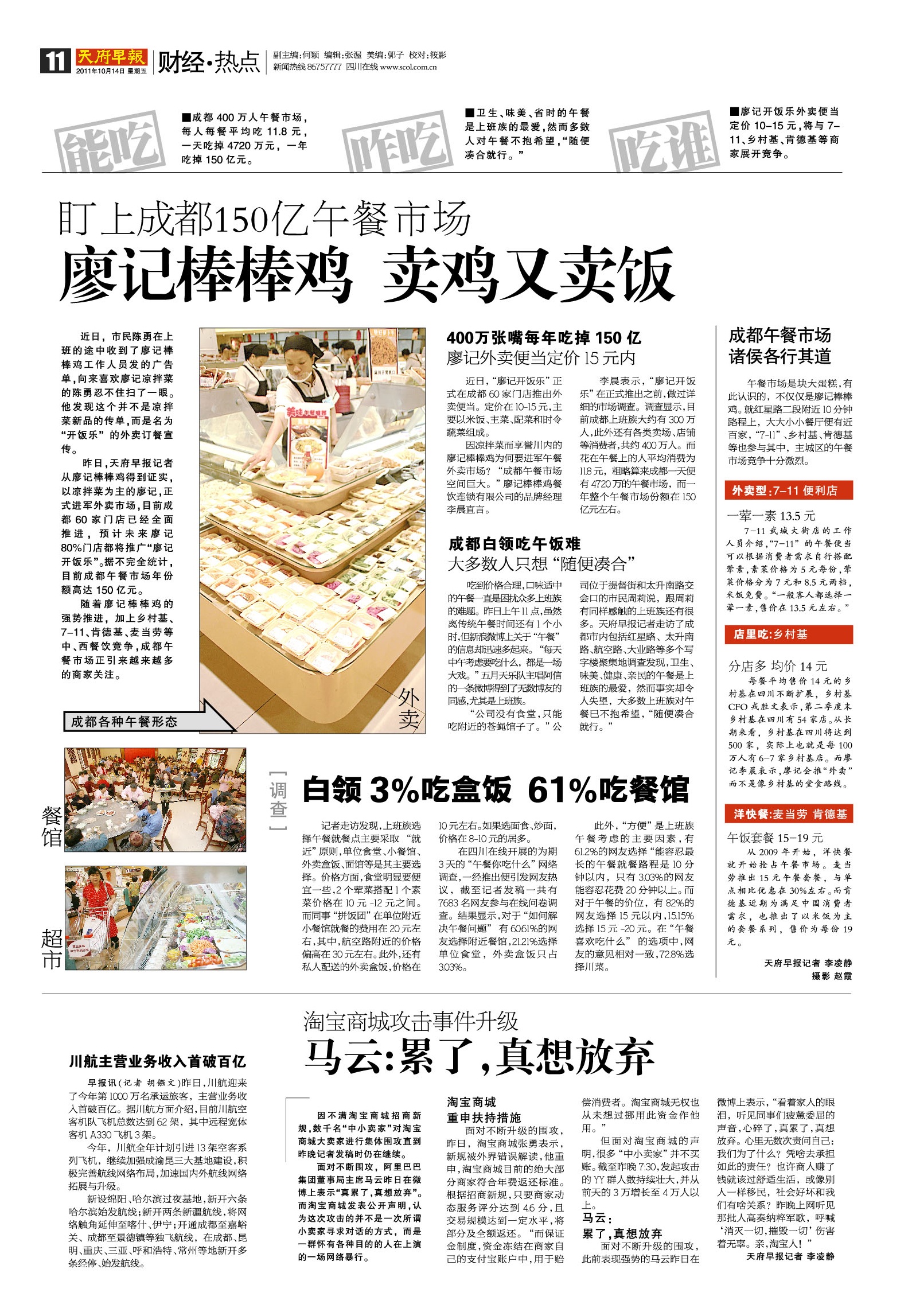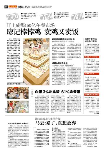 盯上成都150亿午餐市场 廖记棒棒鸡 卖