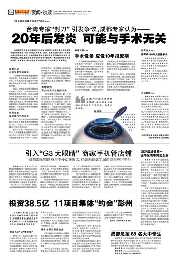 他告诉记者:华西医院从1994年10月开始做激光近视矫正手术,迄今为止已经完成6万例,这些手术患者多是集中在18岁——30岁,以学生为主,还有就是入伍前体检的年轻人。“台湾那位专家的说法有点含糊不清,20年后的角膜瓣发炎,可能与当年手术无关!”邓应平教授说:”任何人的角膜都有可能发炎,比如眼睛卫生没有做好等,都有可能诱发。”