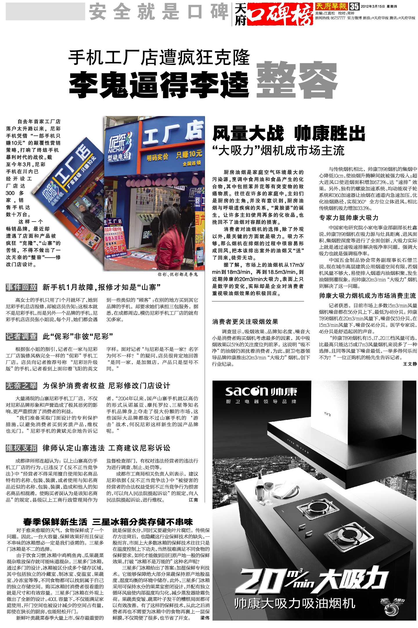 风量大战 帅康胜出 “大吸力”