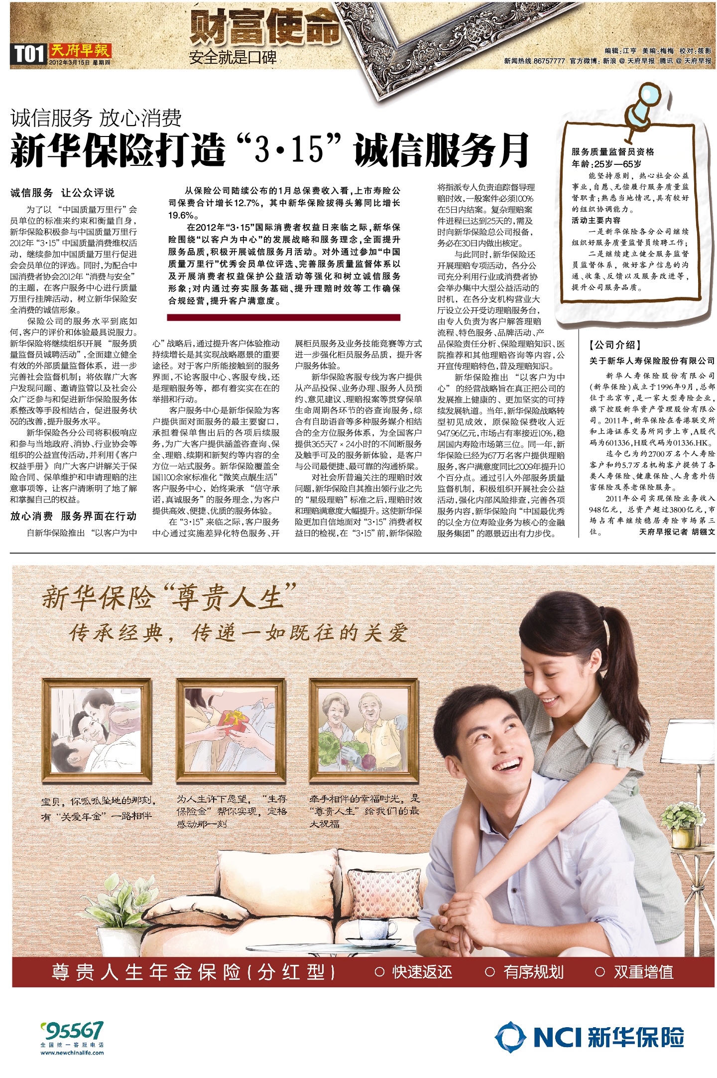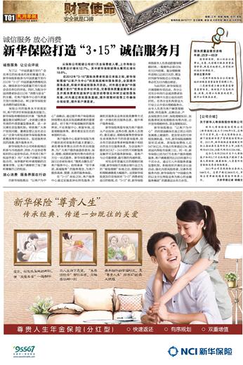 诚信服务放心消费 新华保险打造“3·15