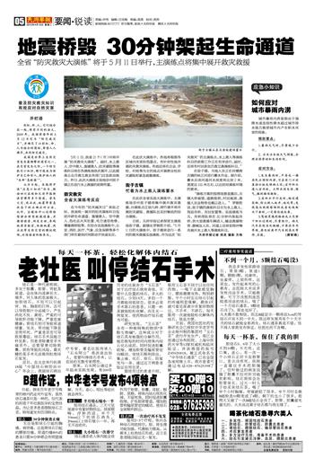 地震桥毁 30分钟架起生命通道