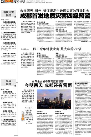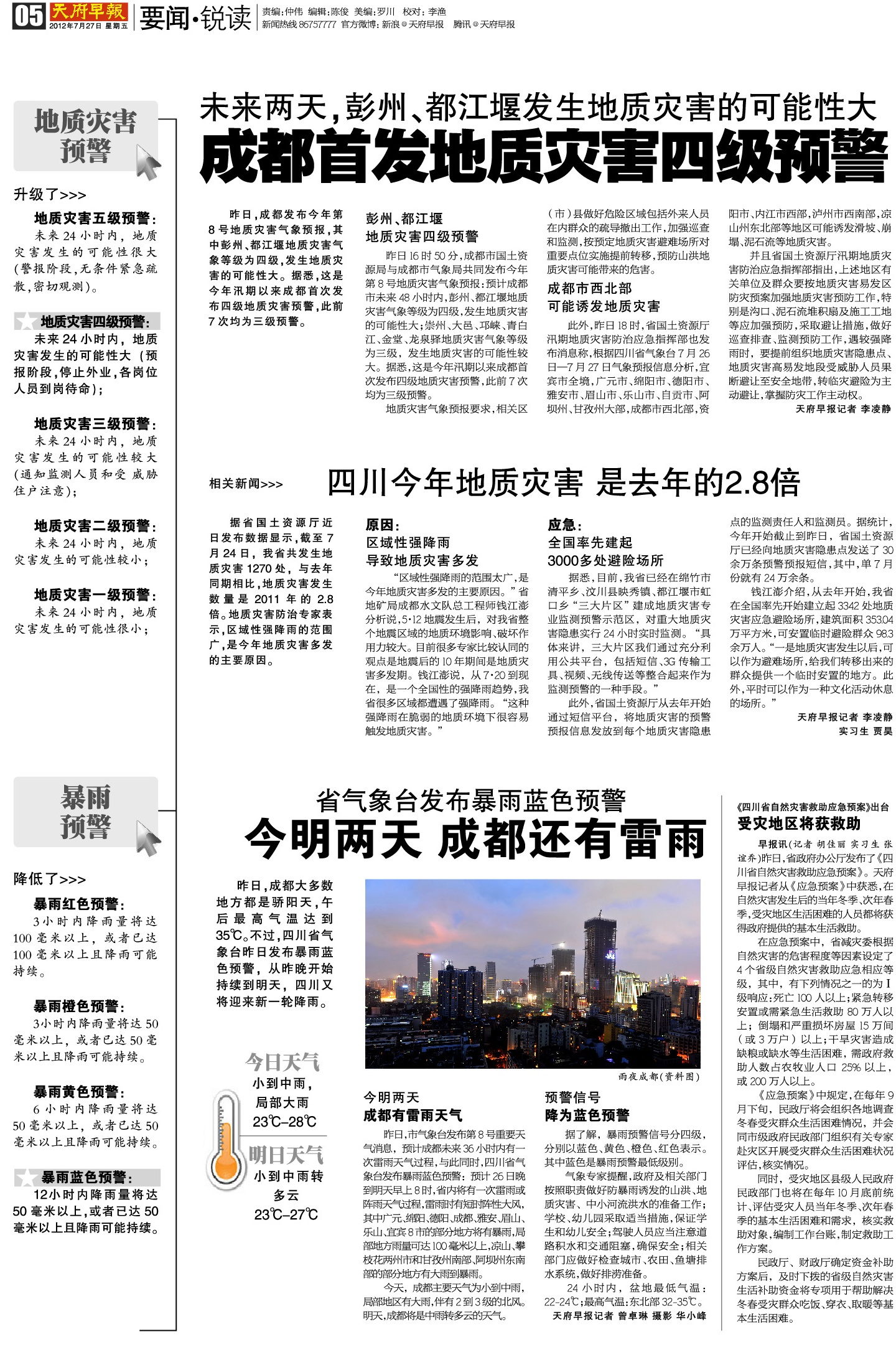 省气象台发布暴雨蓝色预警 今明两天成都还