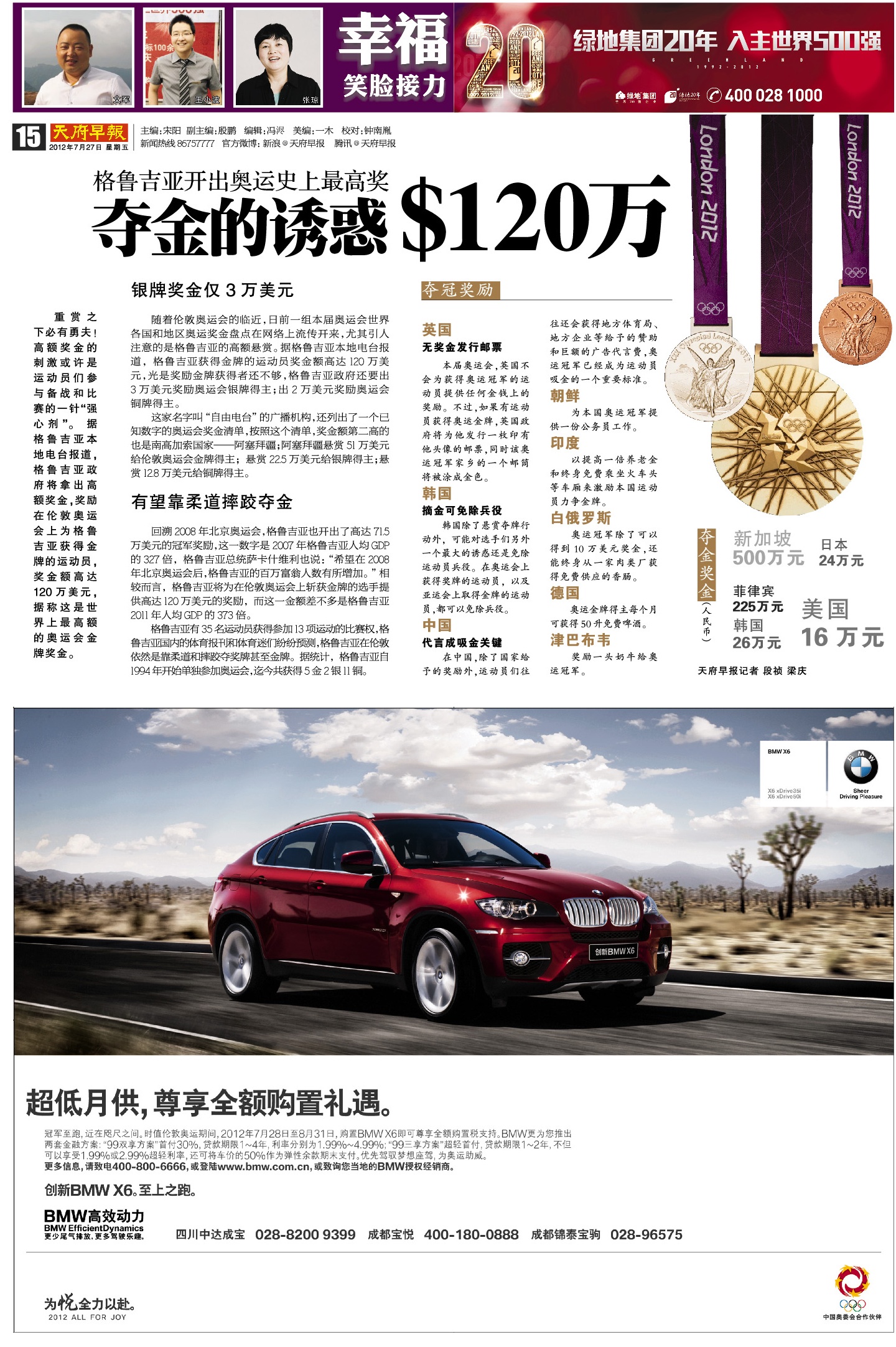格鲁吉亚开出奥运史上最高奖 夺金的诱惑$