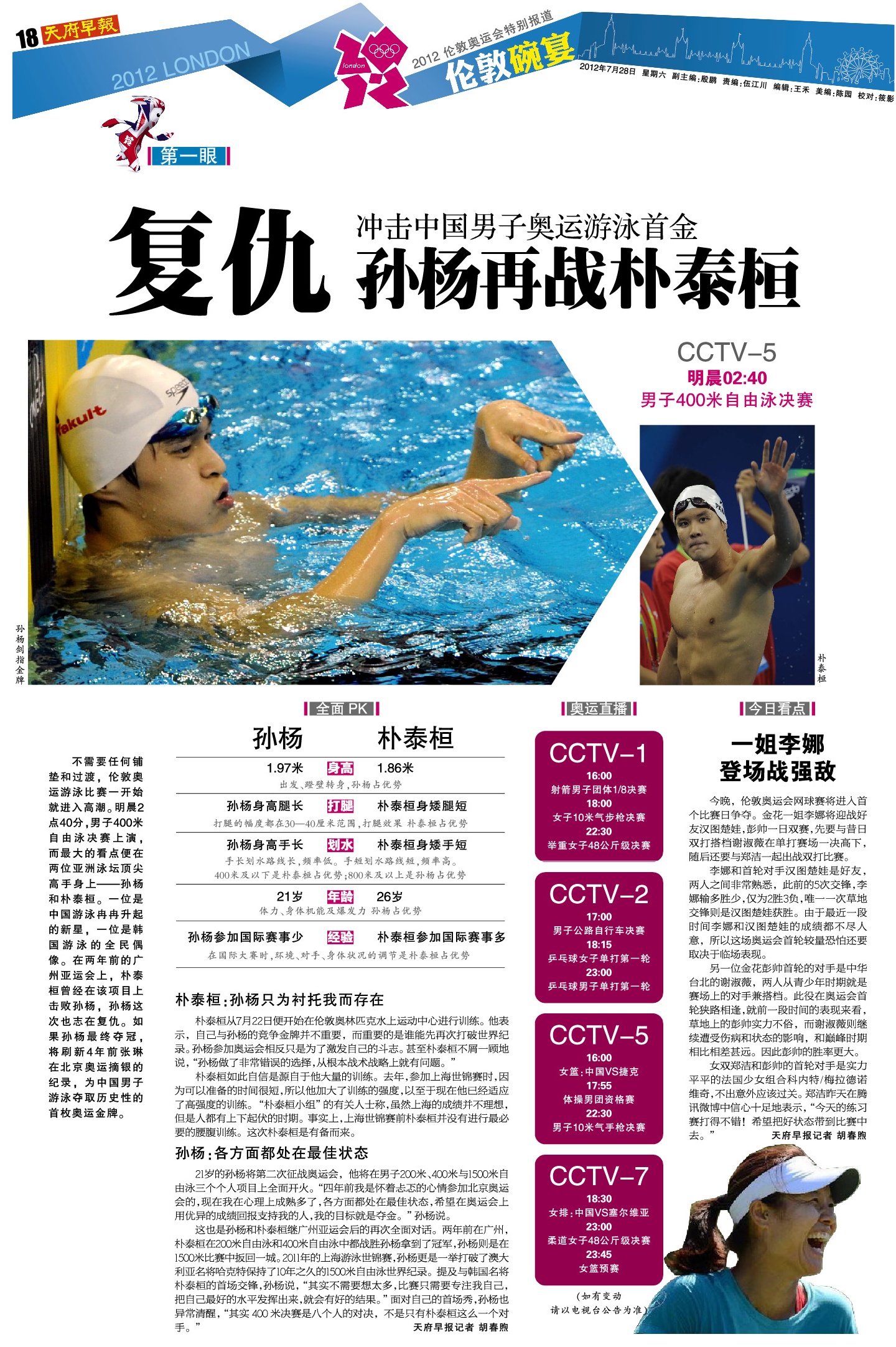 复仇 冲击中国男子奥运游泳首金 孙杨再战