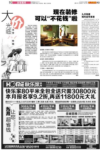 “我们两个都是正常的上班族,每个月的工资除去房贷,压根就存不下什么多余的钱来付装修费。原打算明年存了钱再装修,可是又怕装修费涨得快,所以现在很纠结。”刚拿到房子的小刚告诉记者。在油价猛涨的今天,装修费也不是一笔小款,对于那些刚刚按揭买了房的业主来说,要想马上再拿出一笔钱来装修,可谓是雪上加霜。现在,快乐家装饰公司推出装修不花钱,今年住新房,明年付装修款的服务,解决了很多手头紧业主的烦恼。