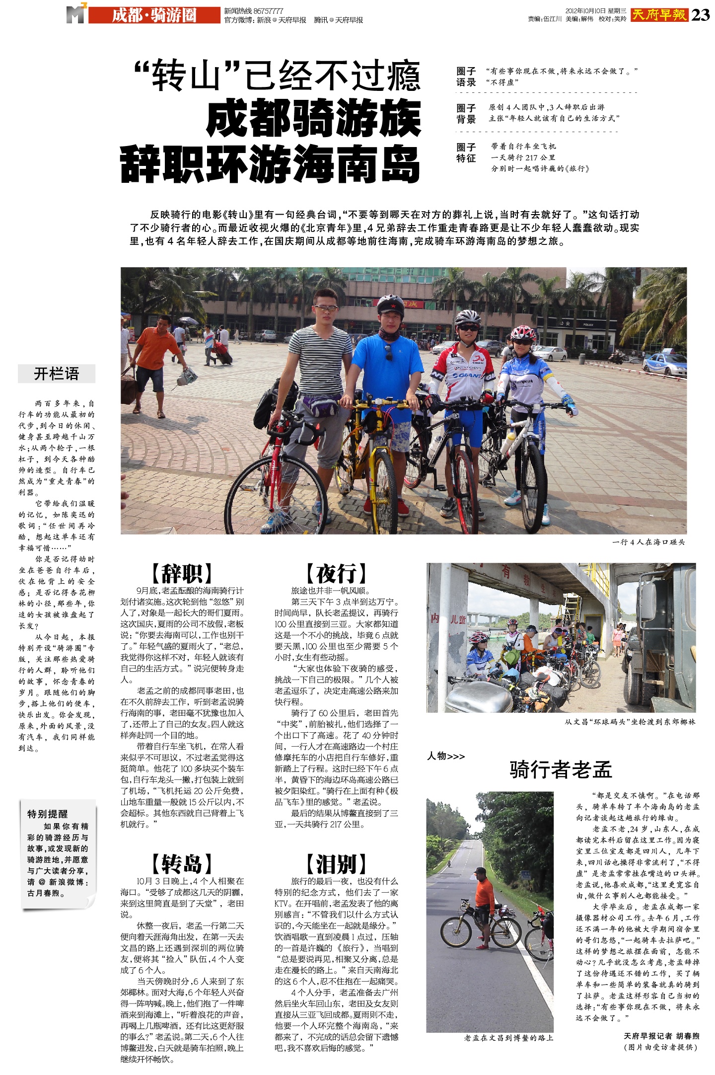 “转山”已经不过瘾 成都骑游族辞职环游海