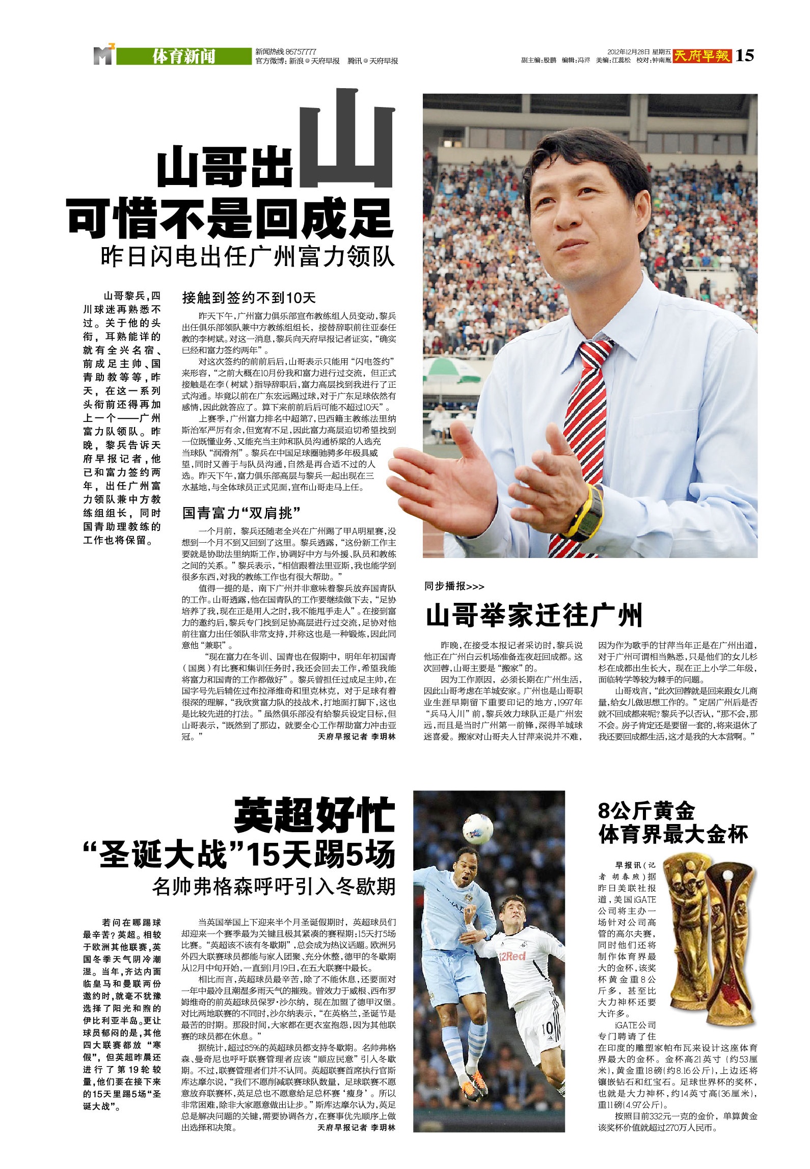 据统计,超过85%的英超球员都支持冬歇期。名帅弗格森、曼奇尼也呼吁联赛管理者应该“顺应民意”引入冬歇期。不过,联赛管理者们并不认同。英超联赛首席执行官斯库达摩尔说,“我们不愿削减联赛球队数量,足球联赛不愿意放弃联赛杯,英足总也不愿意给足总杯赛‘瘦身’。所以非常困难,除非大家愿意做出让步。”斯库达摩尔认为,英足总是解决问题的关键,需要协调各方,在赛事优先顺序上做出选择和决策。 天府早报记者李玥林
