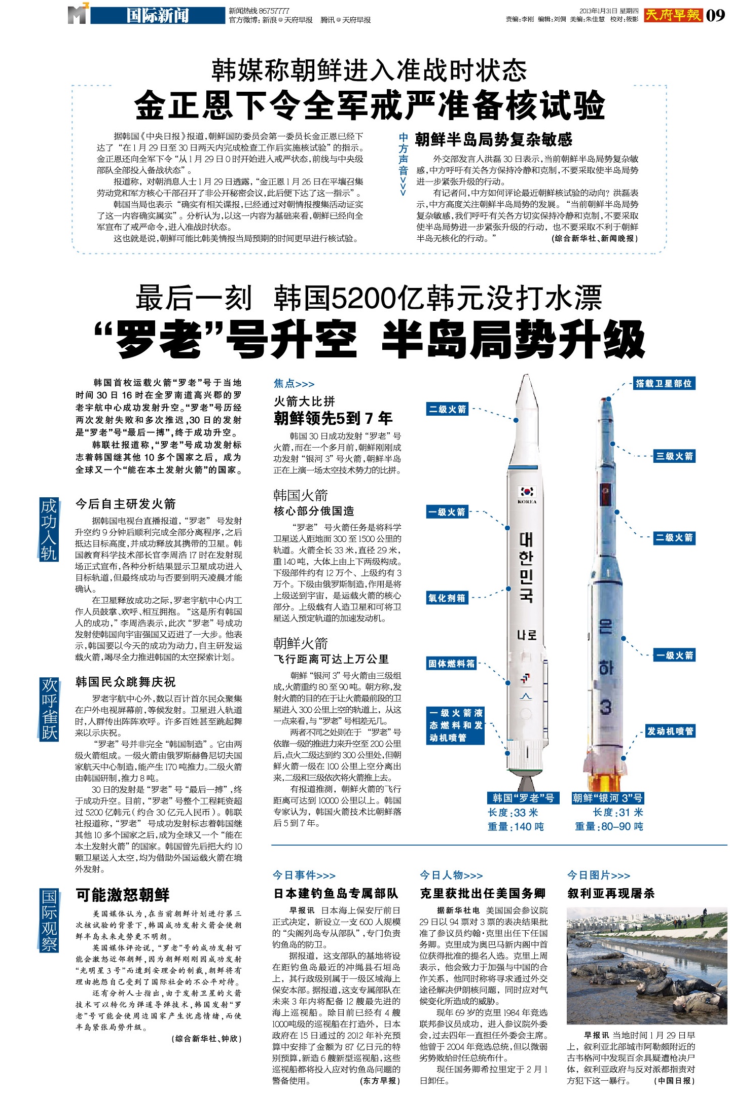 “罗老”号升空 半岛局势升级