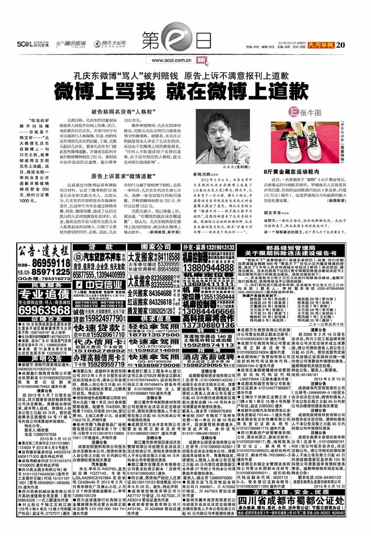 孔庆东微博“骂人”被判赔钱 原告上诉不满意报刊上道歉
