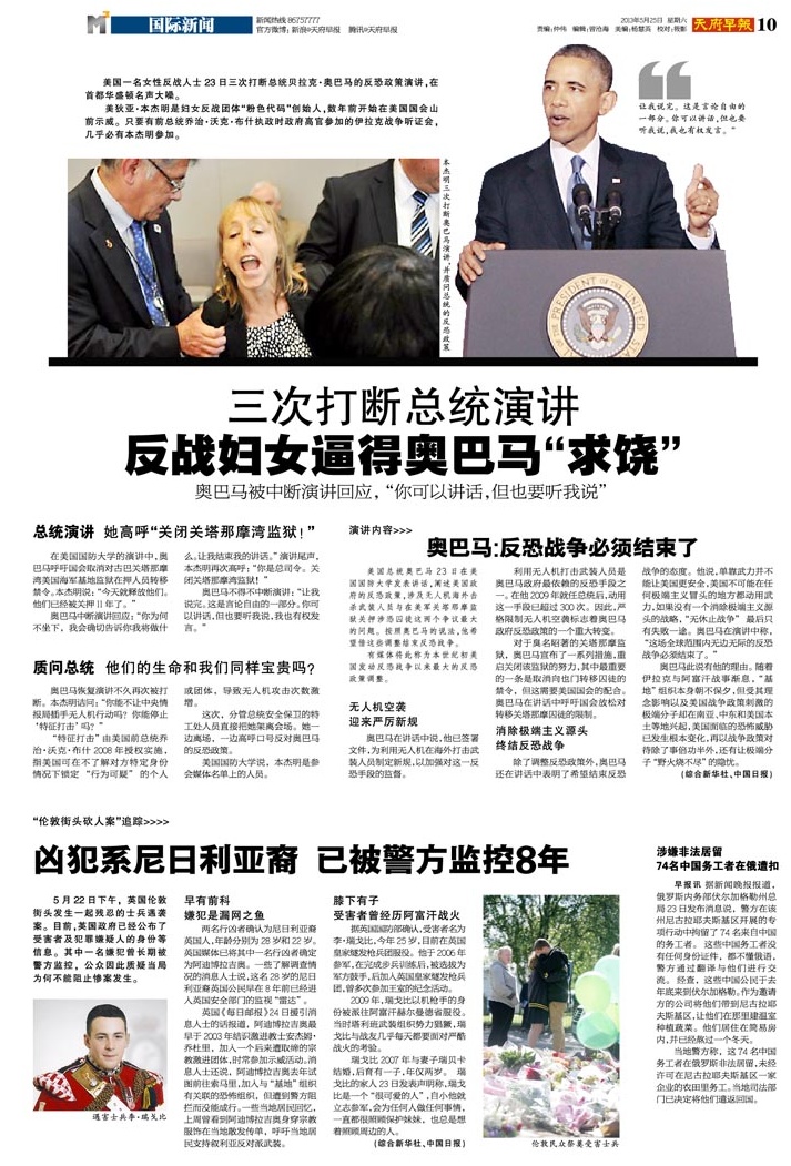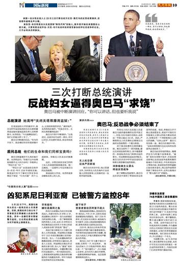 三次打断总统演讲 反战妇女逼得奥巴马“求