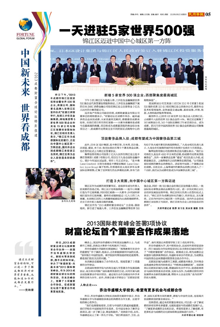 一天进驻5家世界500强 锦江区迈进中国