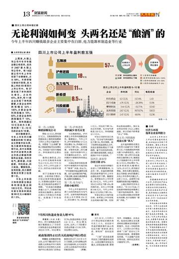 今年上半年四川赚钱最多企业主要集中在白酒、电力能源和制造业等行业