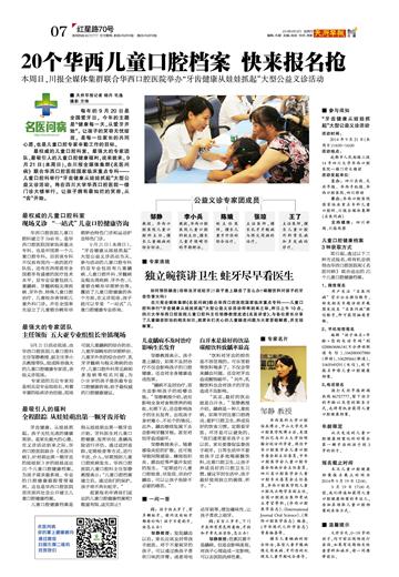 20个华西儿童口腔档案快来报名
