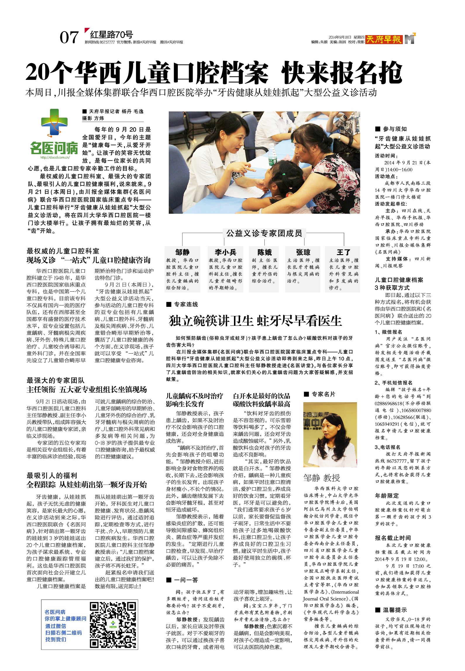 20个华西儿童口腔档案快来报名抢