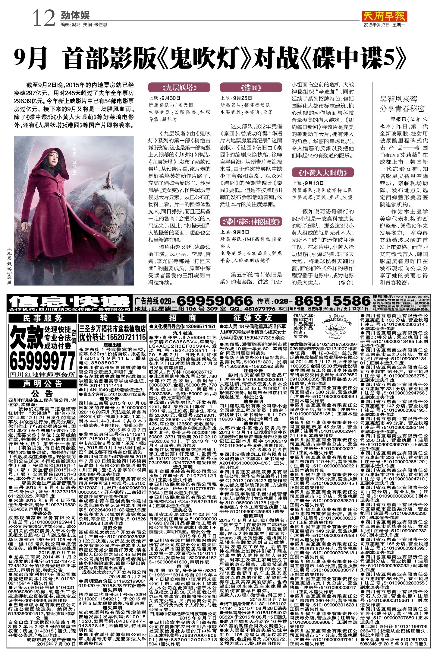 截至9月2日晚,2015年的内地票房就已经突破297亿元,用时245天超过了去年全年票房296.39亿元。今年新上映影片中已有54部电影票房过亿元,接下来的9月又将是一场腥风血雨。除了《碟中谍5》《小黄人大眼萌》等好莱坞电影外,还有《九层妖塔》《港囧》等国产片即将袭来。