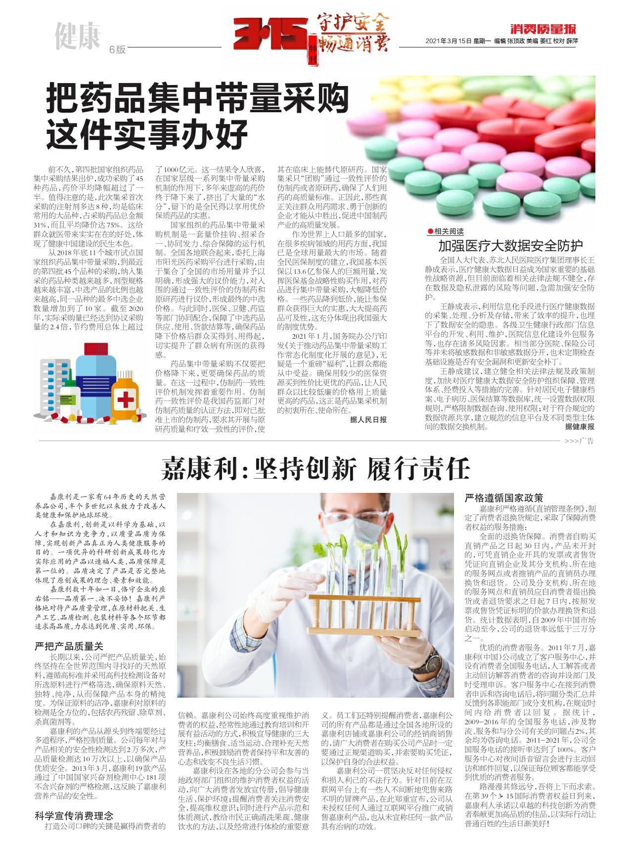 嘉康利:坚持创新 履行责任